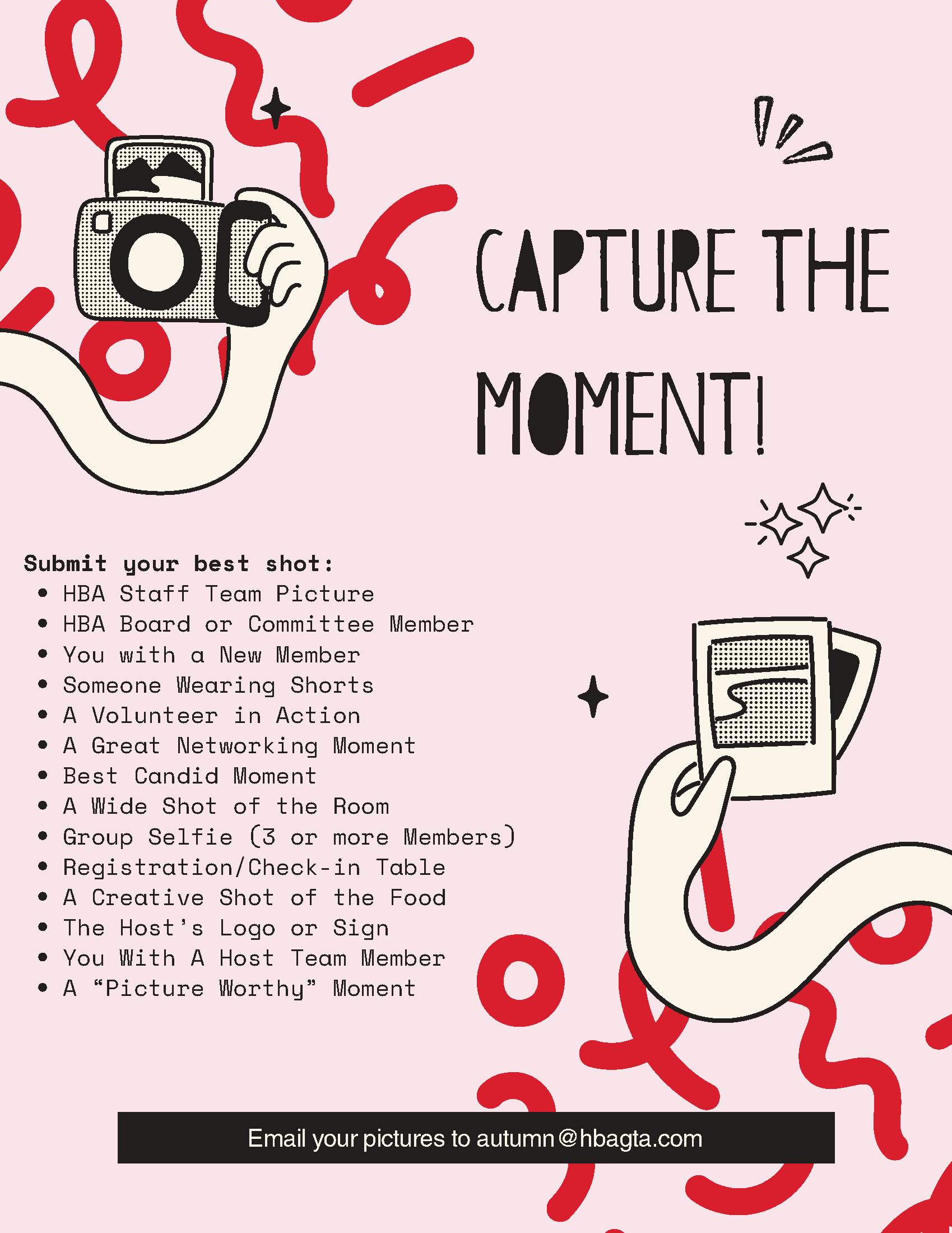 Take Your Best Shot! Capture the moment by taking photos at the GMM! Choose as many of the options you want - top shots will be recognized at the end of the meeting before the prize drawings.
